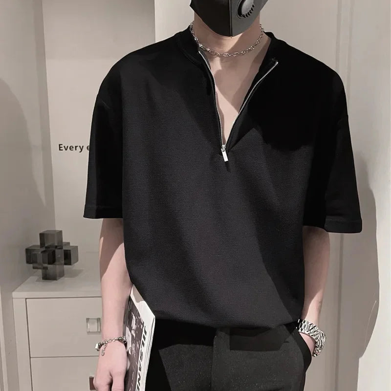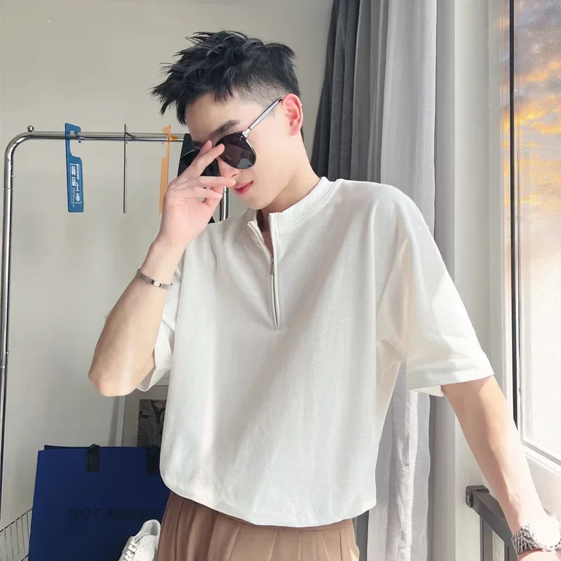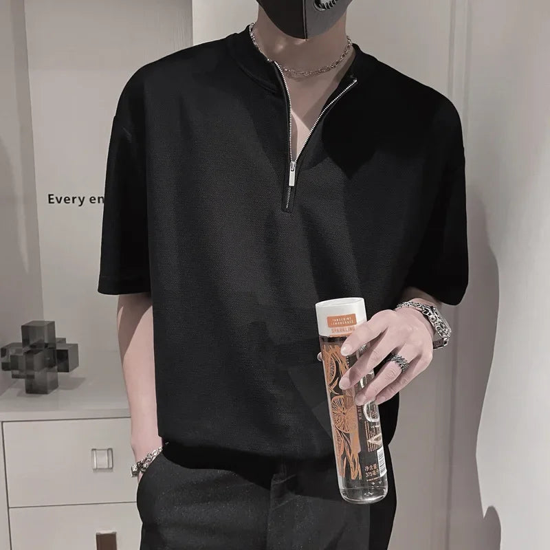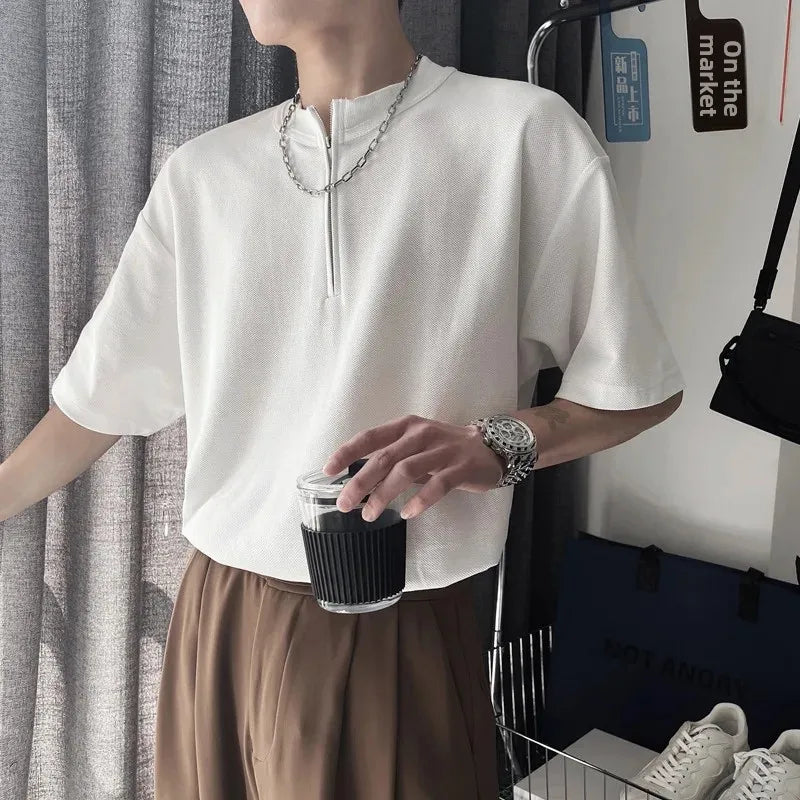 The loose fit provides all-day comfort and unrestricted movement, while the zipper closure adds a clean, minimal touch to your outfit. Inspired by Korean-style fashion, this shirt brings a refined yet contemporary look that suits any modern man’s wardrobe.